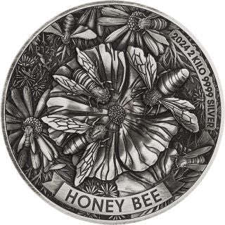 60 $ Australien 2024 – Honigbiene, 2 kg Silber – Antikfinish